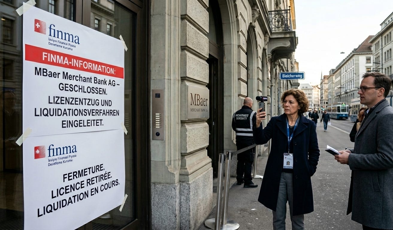 🇨🇭 Suiza: FINMA liquida MBaer Merchant Bank AG por fallos sistemáticos en PBC y evasión de sanciones (27 de febrero, 2026) → Comunicado de FINMA