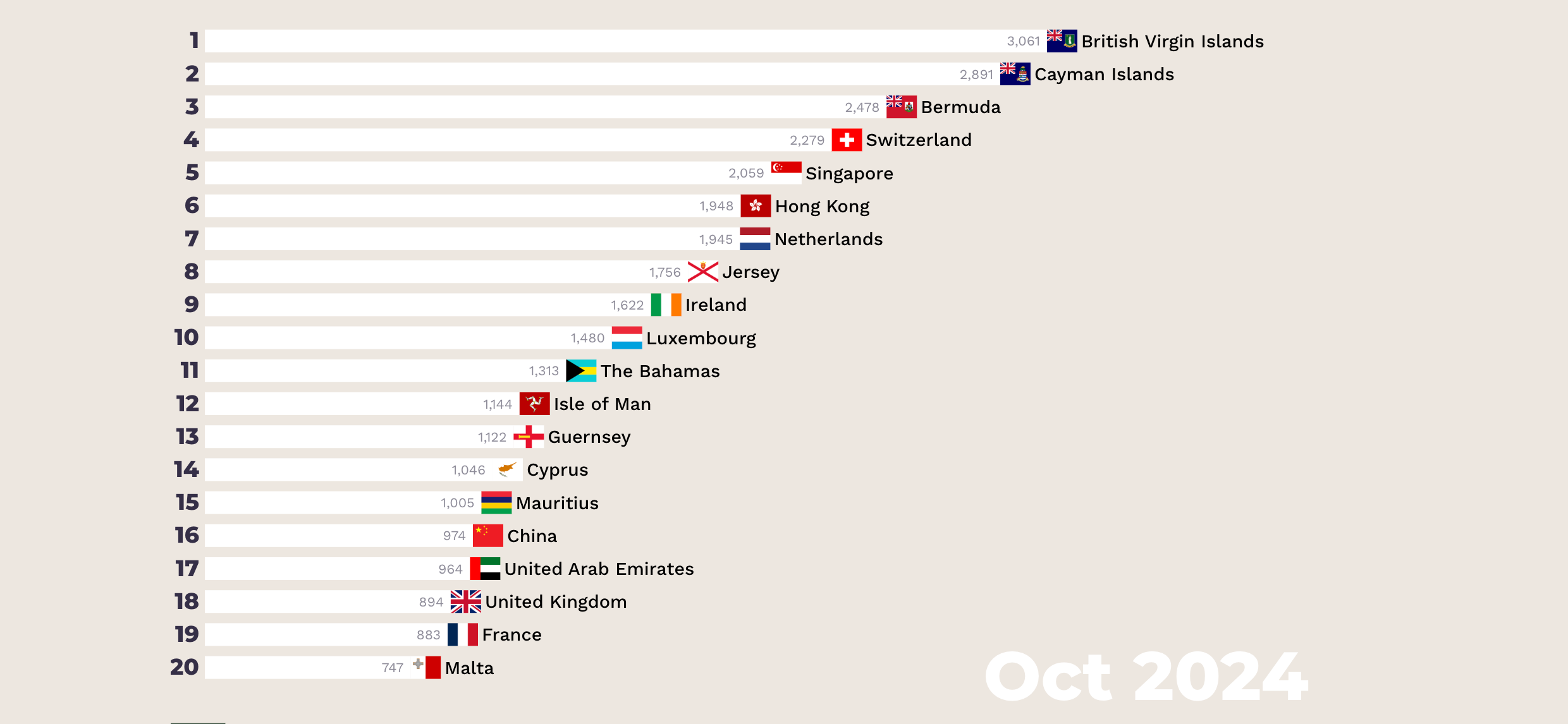 🏛️ Actualización de paraísos fiscales, según la Tax Justice Network (1 de octubre, 2024) - Publicación oficial de la TJN
