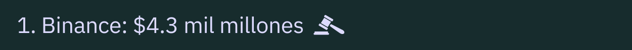 Binance fue sancionada en 2023 con una multa récord de $4.3 mil millones por graves deficiencias en su programa de prevención de blanqueo de capitales, mientras que su CEO, Changpeng Zhao, fue condenado a cuatro meses de prisión. ⛓️